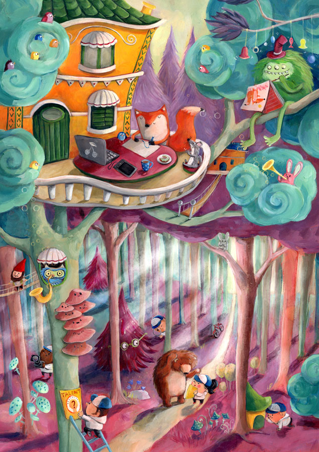 Did I use my paints etc. on second trip? Not once! Actually I didn’t taught anything “normal”, besides pencil for sketches, ever since. Why? Because simply I didn’t have the time. It turned out that work for client A is a long term and really ongoing and schedule was thigh sometimes. This + fact that it required layers made me stick to PS. Sure it’s possible to make layered illustration with any medium but digitally is just faster. After some months I realized that I like working like this a lot and I’m getting better and better quite rapidly. Right now my digital painting skills are still improving all the time and there’s a big(huge I’d say) difference between newest illos and those from e.g 4 months ago. So, I can’t show “old” ones in portfolio and those I’m working now are not to be shown before they are published (yeah, and when they will, this will be after few months of drawing many hours a day so I most probably will say “oh no how terrible those are” – that’s a never ending story). Beside my skills – most projects I’m working on are for learning English on basic level, thus illustrations are pretty straight forward in composition, subject matter etc. As much I have fun working on those stories, I’m dreaming about something more magical or crazier.