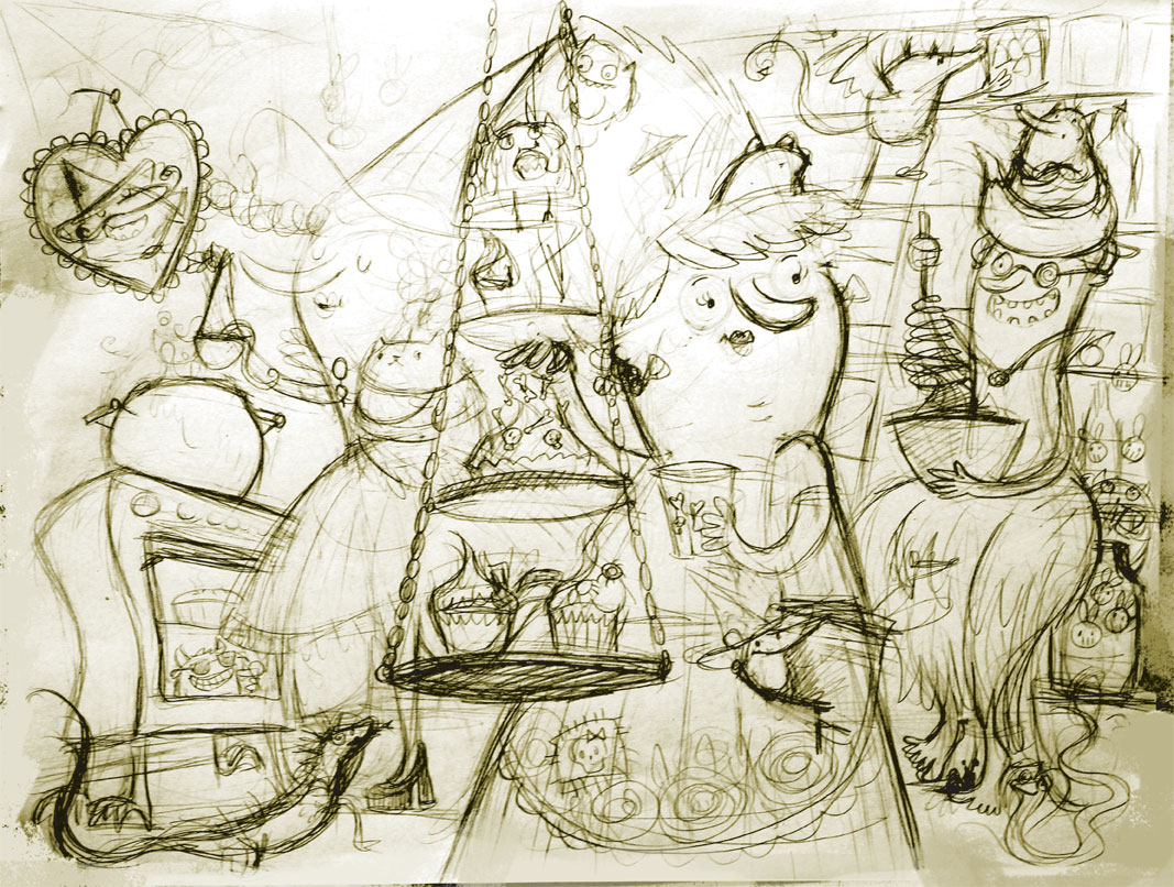That was supposed to be spot illustration, I’d say that’s a tad more but not like a full scene, something in between…Speaking of full scene – I count this as a 2/3 failure. I drawn this sketch which is quite ok (I’m planning small changes) .
