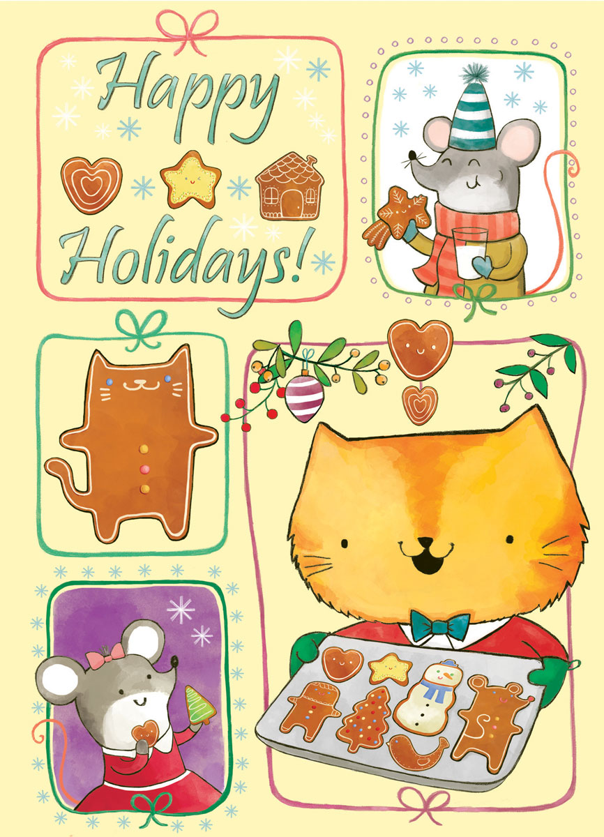 This is amazing how terrible* Holiday designs we sold – I bet it’s because people general go wild if it come to all things Christmas-y. Not that great cat will be more likely to be purchase if it wears Santa’s hat. This kind of illustration is not exactly my cup of tea and our offer in this section is oh well kind of embarrassingly small, but I know that I just have to change it! Luckily, I already get somewhat in the mood preparing some sample for my agent, illustrating one short story which partly happens during Christmas time and I have a contract signed for whole book about Holiday which I will start illustrate in a few weeks. Crazy.